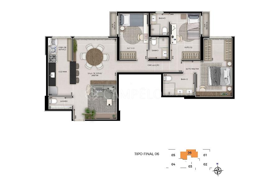 3 dormitórios (3 suítes)